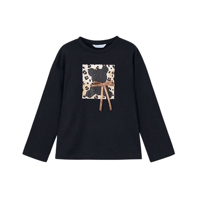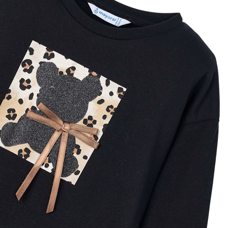 Mayoral Glitter Bear + Leopard Print T-Shirt
