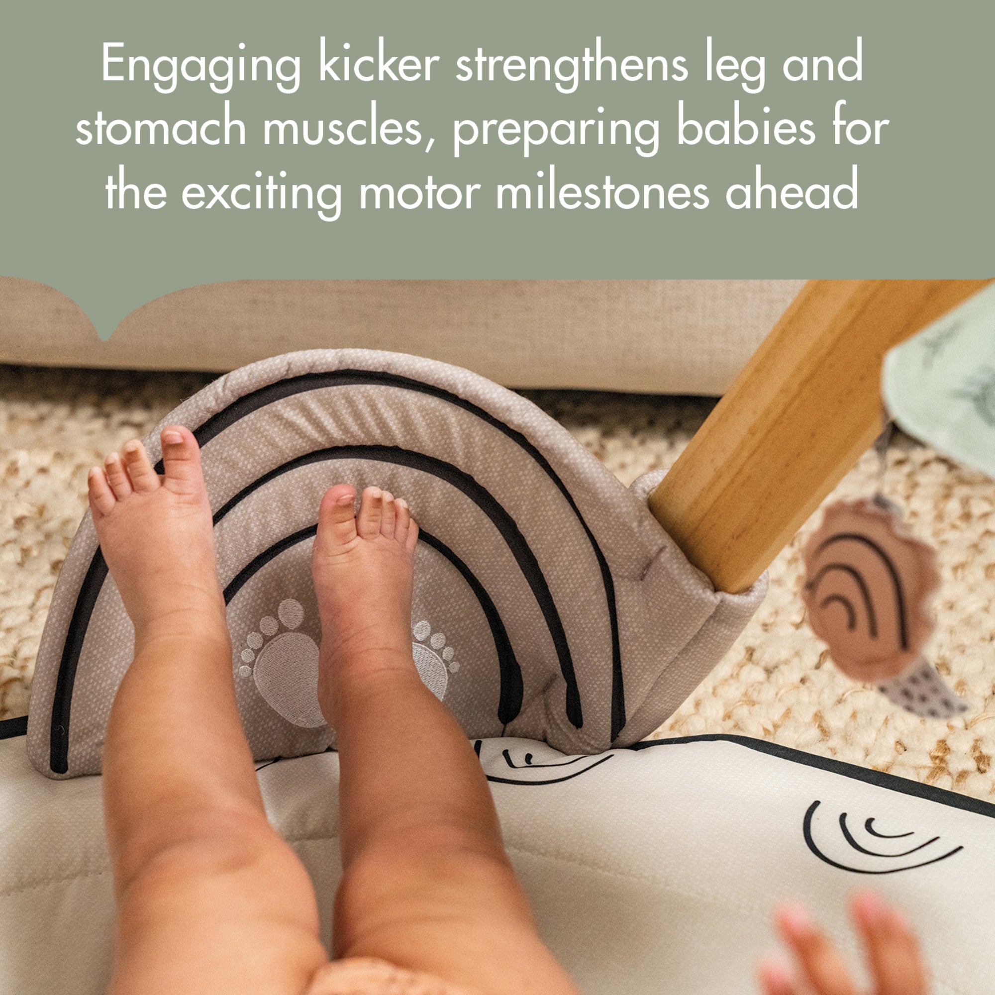Babies will be delighted by the charming interactive musical lion toy, geometric contrasting mobile, giant rainbow kicker, double-sided picture book, and crinkly toys as they learn through play and exploration. Uniquely designed with a stand-alone, natural wooden toy arch, the Gymini will entertain your baby from the newborn months through the sitting stage while adding a trendy décor accent to your home.
