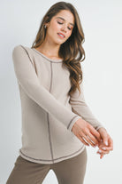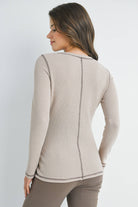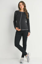 Reverse Stitching Long Sleeve Crewneck Maternity Top