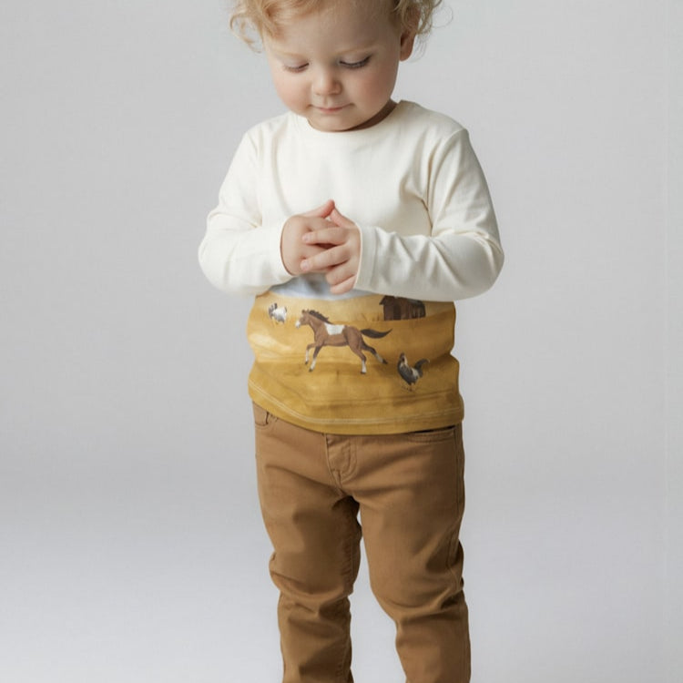 The Mayoral Fitted Pants in Wood offer a timeless, everyday look with the comfort parents love and the quality Mayoral is known for. These slim-fit baby denim pants feature a press-stud front closure with a simulated fly for easy dressing, plus an adjustable elastic waistband with inner buttons to ensure the perfect fit as your little one grows.