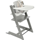 Convenient all-in-one highchair bundle that includes the Tripp Trapp chair, Tripp Trapp Baby Set², cushion, and Stokke tray. This configuration suits the needs of your child from 6 months to 3 years. Tripp Trapp Baby Set² has a new, easy, intuitive harness buckle, 2 click-in points, and a quick, one-click release button.
