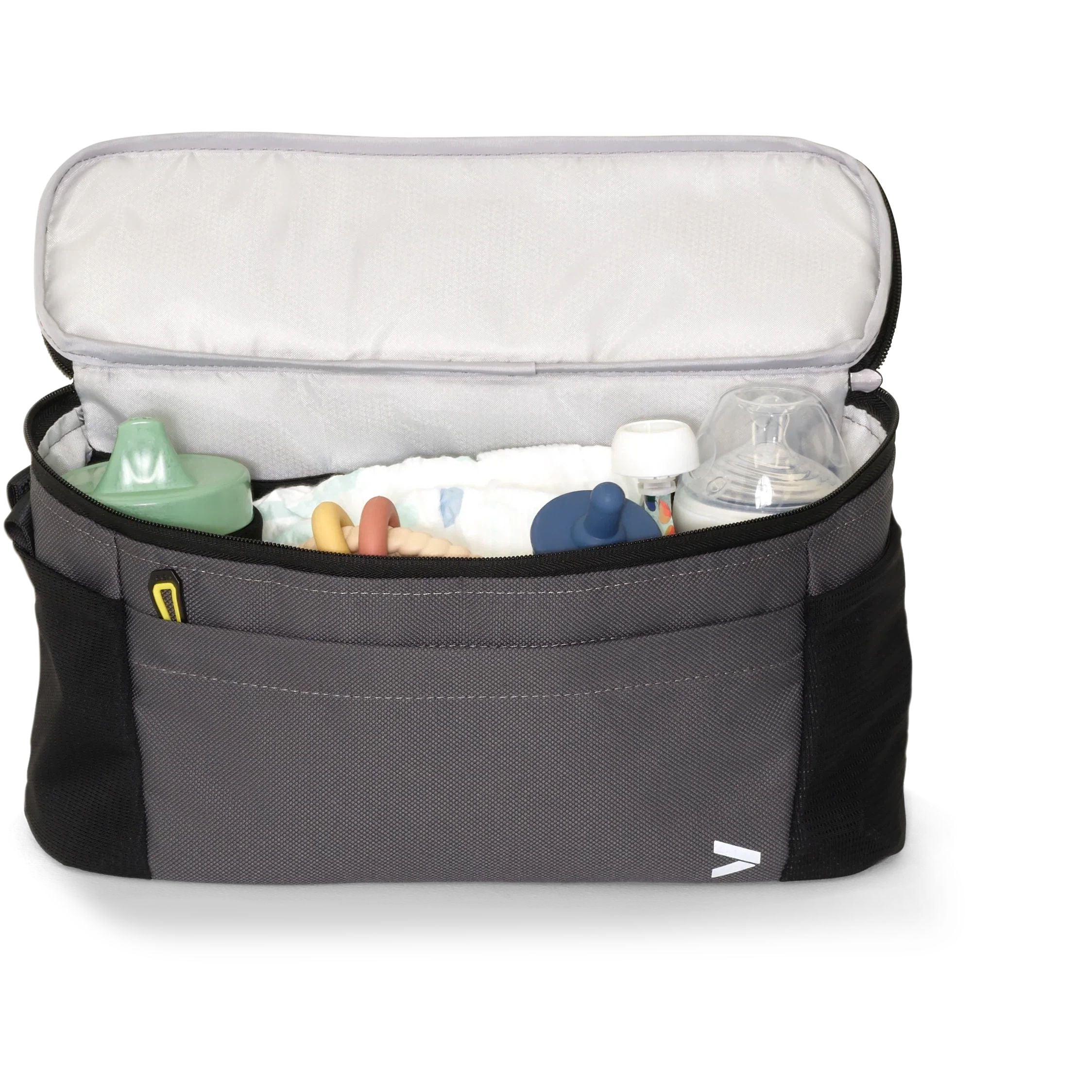 Veer's Parent Organizer is the one you need. Attaches securely to any Cruiser, Switchback Seat, and the &Roll and &Jog frames to provide storage for keeping essentials accessible and secure. It stores infant bottles, sippy cups, wipes, diapers, phones, keys, or whatever else you may need to keep handy.